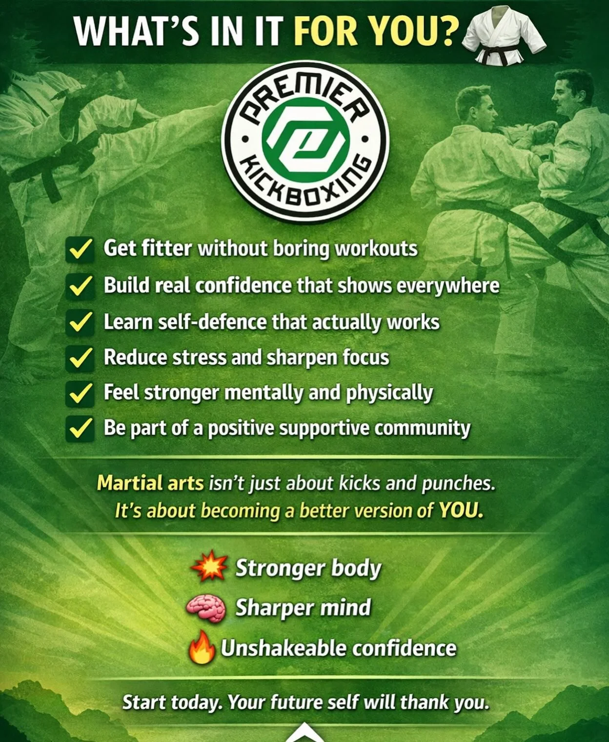 At Premier Kickboxing we offer diverse fitness and martial arts options. Our qualified instructors are UK Black Belt Schools nationally certified and continue to train under Master Foran - 8th Degree Black Belt.