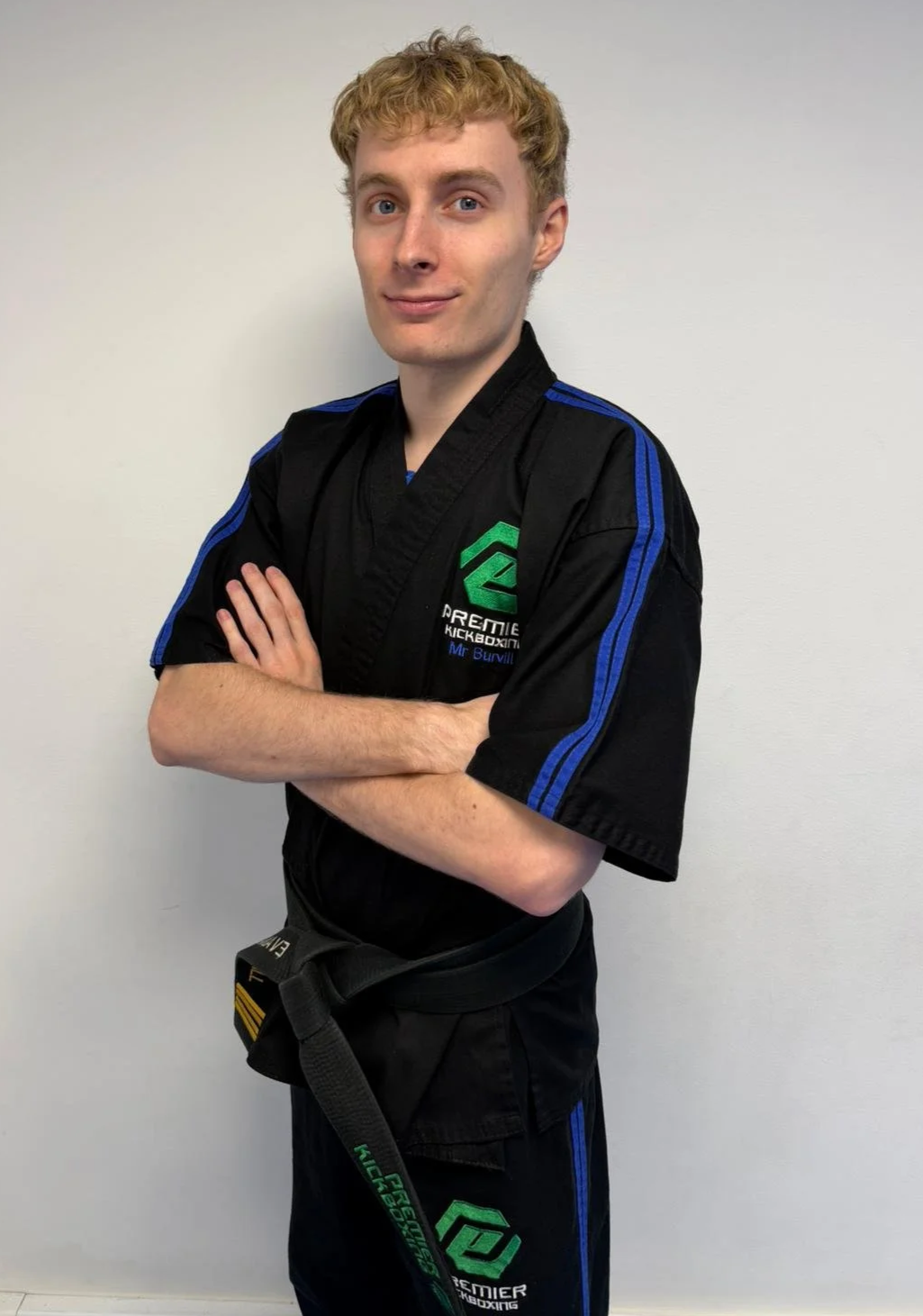 Mr Burvill began his martial arts journey at Premier Kickboxing at the age of 5. Originally the aim was to collect all belts, but he soon found martial arts has so much more to offer, he gained confidence, fitness, flexibility and strength. He worked through every class and belt rank, from the Dragons to the Black Belts. Achieving his Black Belt in 2016, he continued to focus on improving until age 17 when he decided to begin his career as a Mat Helper. Having grown up in the positive environment of the Premier community, he found it rewarding to give back, assisting new students who also share his passion for Kickboxing. Today, he is a full time Instructor, teaching across many of the academies, still hoping to progress his knoledge.